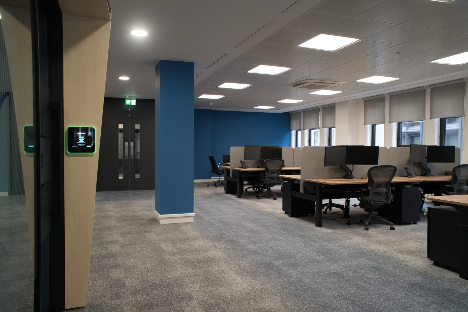 Having worked with ABC many times previously, it was our chance to show ABC the quality of service as JCB Interiors now and we didn’t disappoint. ABC appointed JCB to completely re-fit the entirety of the 2nd floor (Cat A and B). What made this particularly challenging was the live data centre in the middle of the fit out! This had to remain live at all times and dust free. Very difficult given the entire fit out going around it, but with detailed planning and utmost care, we managed to pull it off. We carefully relocated one of the comms room walls and installed a brand new gas suppression system in the data centre. Makes the rest sound easy now but with new ceilings, power, lighting, AC, raised access flooring as well as the fit out itself, we are very proud to have achieved great results in a short timeframe on site.
